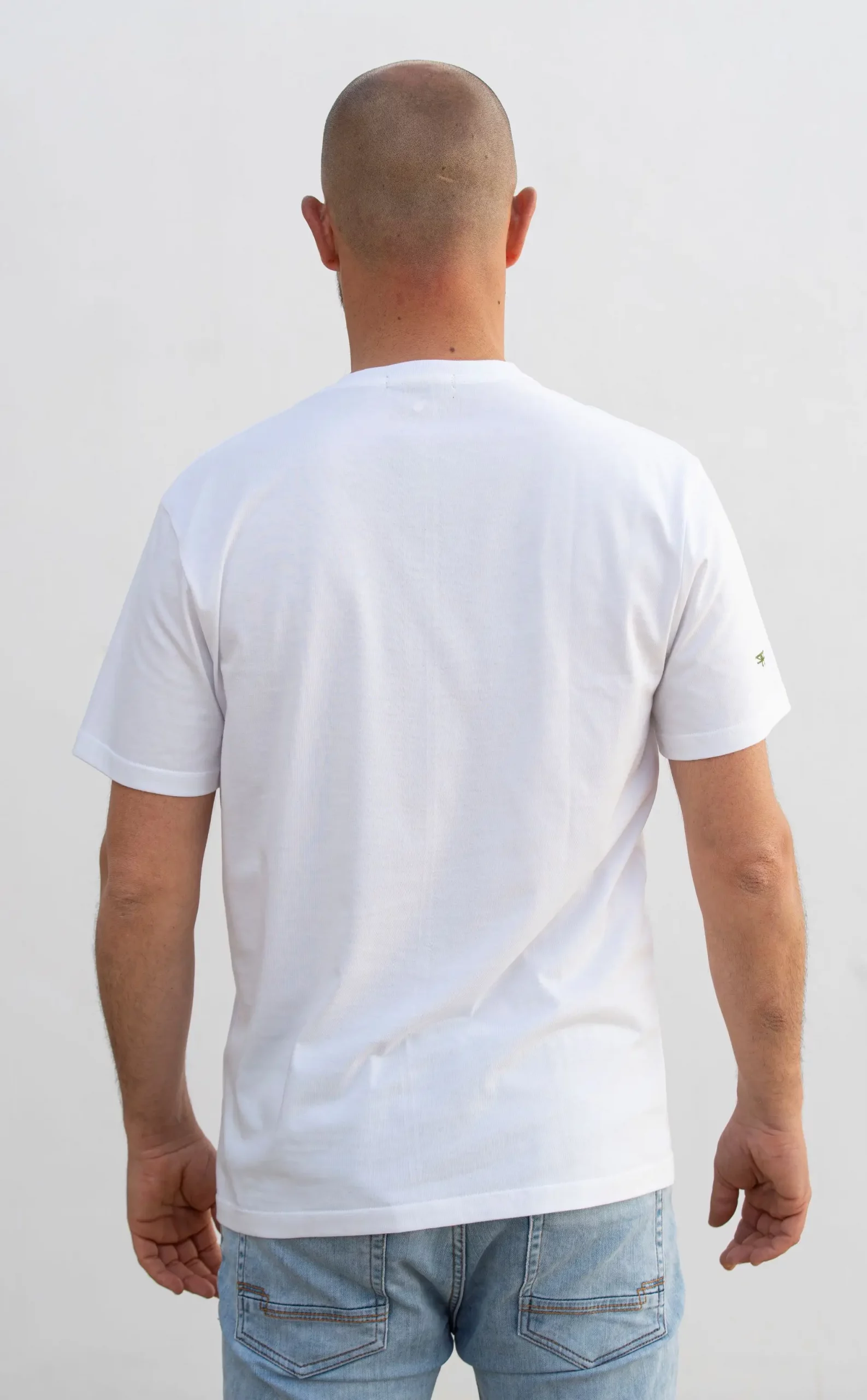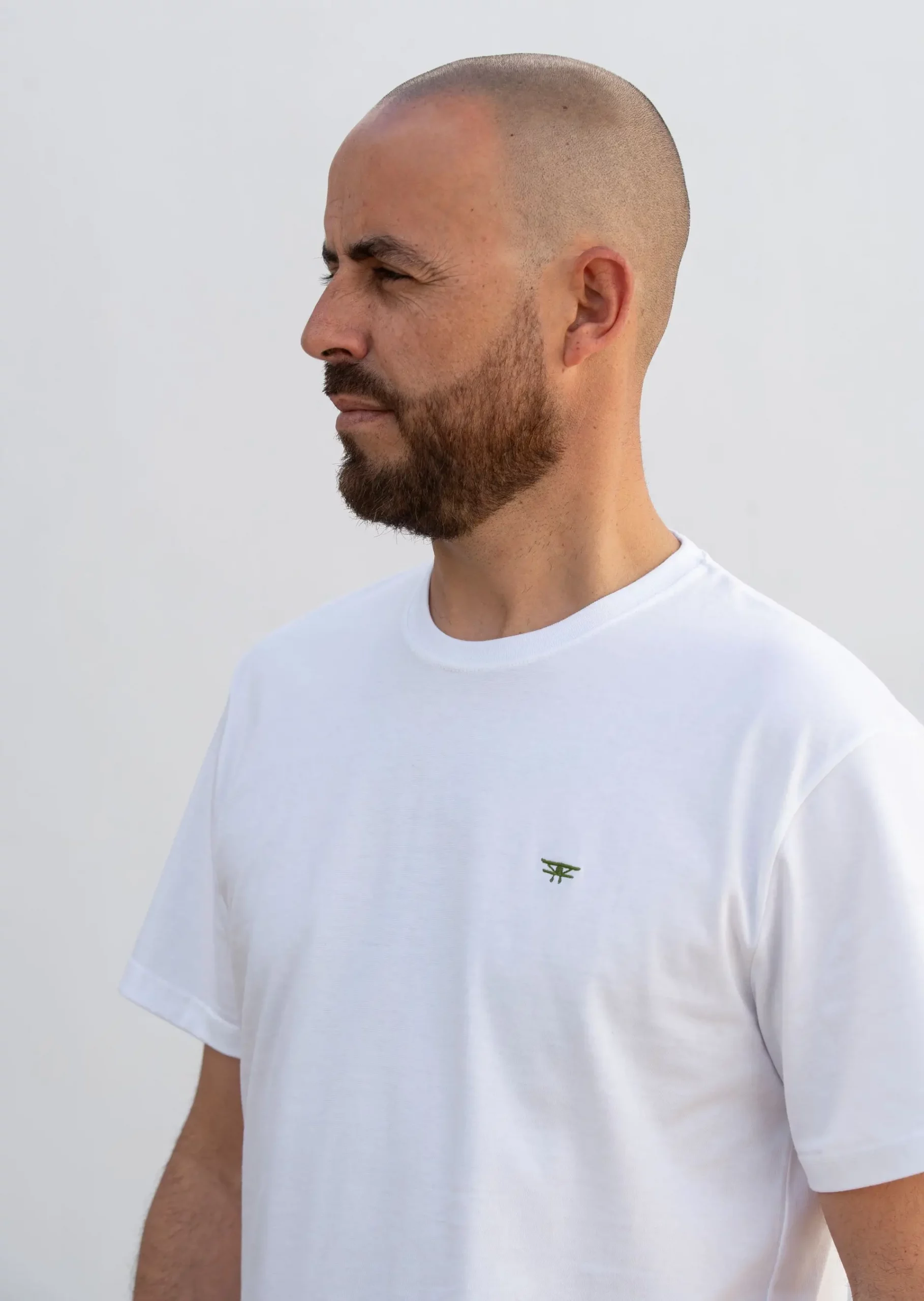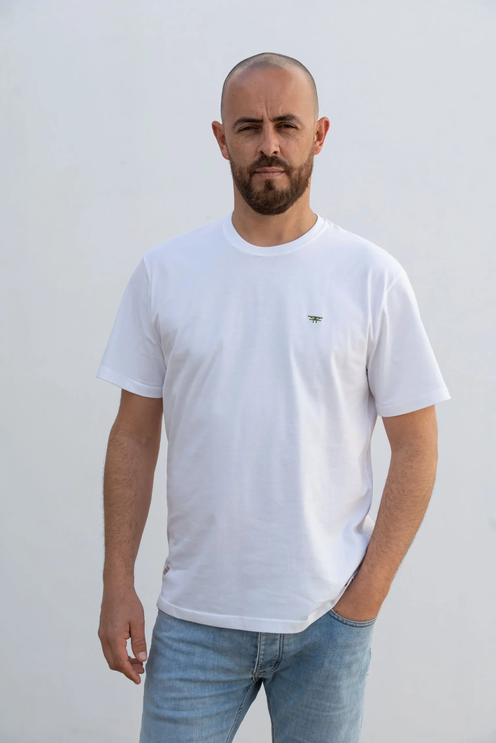 Camiseta confeccionada 100% algodón y avioneta verde en delantera y manga, detalle etiqueta tejida en lateral inferior.